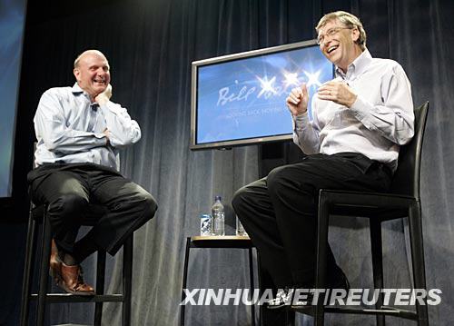 6月27日,在美國華盛頓州雷德蒙德的微軟公司總部,美國微軟公司聯(lián)合創(chuàng)始人比爾·蓋茨(右)在員工送別自己的活動中講話。旁邊是微軟首席執(zhí)行官史蒂夫·鮑爾默。當天,比爾·蓋茨度過了他在微軟最后一個全職工作日。 新華社/路透