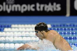6月29日,美國(guó)名將菲爾普斯在比賽中。當(dāng)日,在內(nèi)布拉斯加州的奧馬哈舉行的美國(guó)奧運(yùn)會(huì)游泳選拔賽男子400米個(gè)人混合泳決賽中,菲爾普斯以4分05秒25的成績(jī)獲得第一名,并創(chuàng)造該項(xiàng)目新的世界紀(jì)錄。
