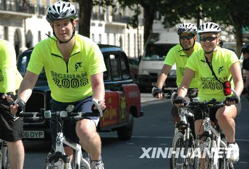 6月30日,在英國(guó)首都倫敦,來自伯明翰中國(guó)城的幾名片警騎車前往中國(guó)大使館遞交地震捐款。 | |