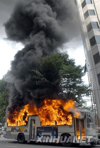 7月1日,在韓國(guó)首都首爾,一輛用來(lái)阻擋抗議隊(duì)伍的警車被抗議者點(diǎn)火焚燒。據(jù)官方數(shù)字統(tǒng)計(jì),在持續(xù)數(shù)周的抗議活動(dòng)中,共有111輛警車被毀,372名防暴警察受傷。 新華社/法新