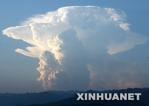 7月6日傍晚,浙江省天臺縣縣城上空出現(xiàn)蘑菇云奇觀。