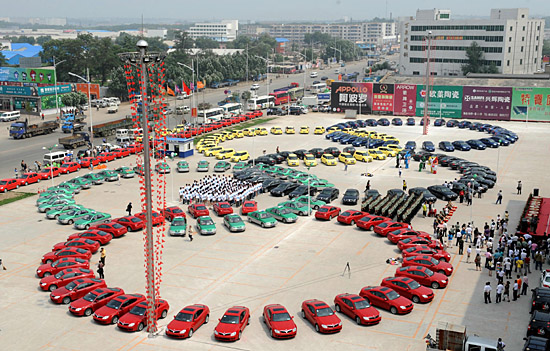 7月5日,沈陽(yáng)市啟動(dòng)“志愿服務(wù)迎奧運(yùn),文明出行我先行”主題活動(dòng),150多輛不同品牌、五種顏色拼成奧運(yùn)五環(huán)圖案的宣傳車(chē)停在沈陽(yáng)街頭,宣傳文明出行。