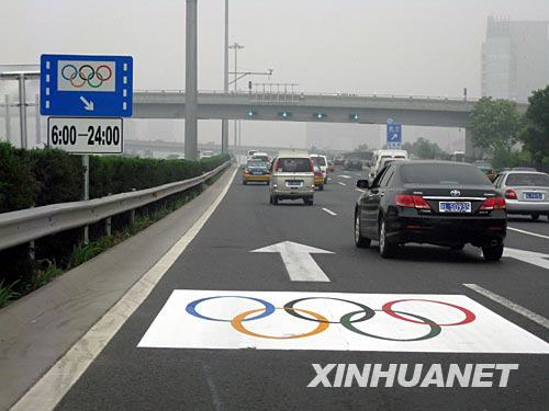 北京奧運會奧林匹克專用車道從7月5日起陸續(xù)施劃,施工涉及長安街以及二、四、五環(huán)路等道路。它由奧林匹克專用車道標志、標線和地面標識組成。車道自7月20日啟用,至9月20日止,專供奧林匹克車輛通行,單向總長285.7公里。