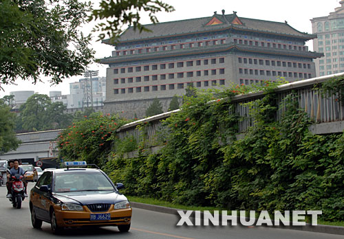 | 明城墻和北京城東南角樓(7月7日攝)。 |