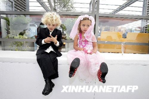 7月9日,在荷蘭的阿姆斯特丹的科學博物館,白克爾(左)和萊維在說完“我愿意”之后心神不寧地坐在一起。當天是“兒童婚禮日”,孩子們可以在這一天結婚,但是這種“婚姻”關系在日落后就宣告結束。 新華社/法新