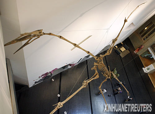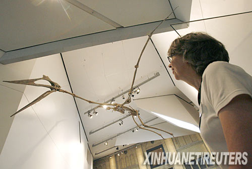 7月17日,世界上最大的風神翼龍化石骨架在加拿大多倫多市的安大略皇家博物館內(nèi)展出。這具骨架體長6米,翼展達12米。風神翼龍是地球生命史上最大的飛行動物之一。 新華社/路透