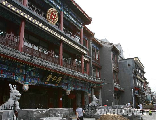 7月17日在即將完工的大柵欄商業(yè)街拍攝的“同仁堂”藥店。