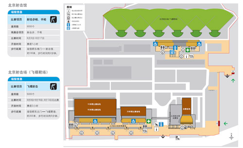北京射擊館與北京射擊場(飛碟靶場)實(shí)行統(tǒng)一安檢,從東側(cè)兩個安檢口均可進(jìn)入。