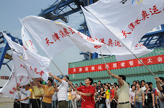 天津:奧運志愿者誓師服務奧運