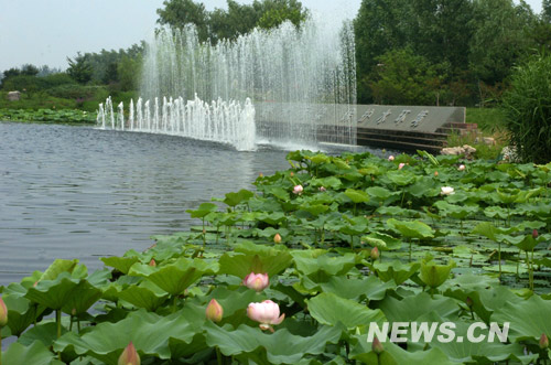 北京清河污水處理廠的景觀噴泉(7月23日攝)。 新華網北京7月23日電