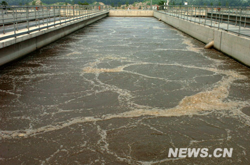 這是7月23日拍攝北京清河污水處理廠的污水沉淀池。 | |