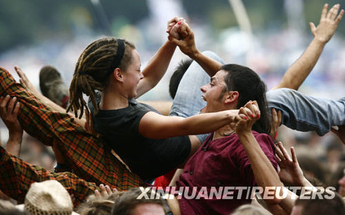 8月2日,在波蘭西部的奧得河畔,參加波蘭第14屆伍德斯托克音樂節(jié)的人們正在歌舞狂歡。新華社/路透