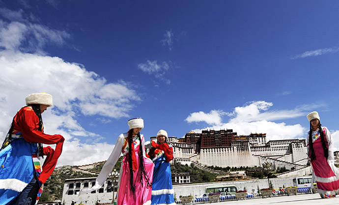 8月6日,兩名來(lái)自內(nèi)地的游客在布達(dá)拉宮廣場(chǎng)上留影。據(jù)西藏旅游局提供的數(shù)據(jù),今年6月份進(jìn)藏的游客是9.6萬(wàn)人次,今年7月份這個(gè)數(shù)字已經(jīng)躍升到35萬(wàn)人次。進(jìn)入8月以后,赴西藏旅游的游客還將大幅增長(zhǎng)。目前,拉薩市涉外星級(jí)賓館入住率比5月翻了一番;嘏杆俚穆糜问袌(chǎng),已重現(xiàn)去年同期游客云集雪域高原的盛景。