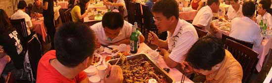 翼?xiàng)R月眯袨橹黝},老板都是沒事就背包行走各地的驢子(自助旅游愛好者)。這個(gè)餐廳還有一個(gè)故事,當(dāng)時(shí)一隊(duì)驢友去湘西徒步,大霧中迷了路,誤打誤撞走進(jìn)一個(gè)村子,一對(duì)土家老人用一種特別的石鍋菜招待了他們,回來(lái)很久后他們?nèi)阅钅畈煌,最終又回村子請(qǐng)了個(gè)廚師回來(lái)。 強(qiáng)烈推薦一款翼?xiàng)5恼信撇恕诲侓~,大概有四十厘米直徑的大鍋,里面的香辣濃湯燉的鯰魚,配上萵筍豆腐絲什么的……想起來(lái)就讓人流口水。