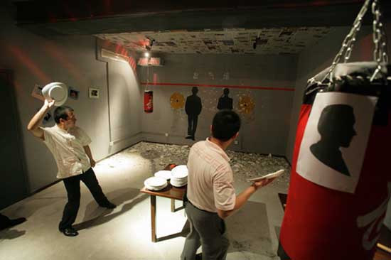 黑暗餐廳“巨鯨肚”境界店,是樂港集團(tuán)繼開創(chuàng)亞洲第一家黑暗餐廳——巨鯨肚黑暗餐廳國(guó)貿(mào)店之后推出的又一力作。境界店保留了黑暗餐廳最基本的服務(wù),即在餐廳三層黑暗區(qū)提供“黑暗時(shí)空”用餐體驗(yàn)。 除此之外,境界店最絕妙的創(chuàng)想體現(xiàn)在餐廳二層的有光區(qū)。店主將有光區(qū)設(shè)計(jì)成一個(gè)“發(fā)泄餐廳”。只要您愿意,餐具、瓷器、家具,甚至餐廳里一切東西,您都可以盡情砸碎;只要您愿意,沙袋上或“出氣墻”上可以貼上讓你痛恨或厭惡的人的照片,讓您盡情擊打;只要您愿意,盡可以大喊大叫或是放聲痛哭一場(chǎng),不用擔(dān)心有任何人進(jìn)來(lái)打擾您……