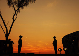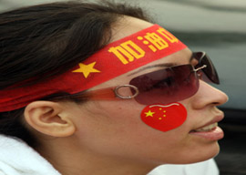 北京,隨處可見(jiàn)印有“祥云”圖案、用中英文寫(xiě)著“同一個(gè)世界,同一個(gè)夢(mèng)想”、蓋著“中國(guó)印”的旗幟、橫幅,處處回蕩著《北京歡迎你》《Forever friends(永遠(yuǎn)的朋友)》的歌聲。