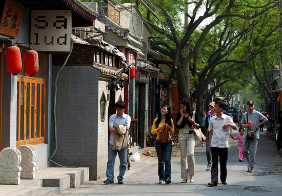 南鑼鼓巷是北京東城區(qū)的一條很古老的街道,仍保持著元大都街巷、胡同的規(guī)劃。它始建于元朝,南北長(zhǎng)約800米,東西各有8條對(duì)稱(chēng)的胡同,整齊地排列在兩側(cè),從外形看猶如一條蜈蚣,所以又名“蜈蚣街”! 推開(kāi)一扇厚厚的黑漆木門(mén),一個(gè)通透敞亮的老北京四合院赫然映入眼簾,談笑聲、低語(yǔ)聲、鳥(niǎo)鳴聲依稀從涼棚上纏繞的葡萄藤蔓間飄出來(lái)……在南鑼鼓巷這條不足800米的狹長(zhǎng)小巷中,布滿(mǎn)了這種低門(mén)窄戶(hù)而別有洞天的小酒吧,宛如這條街巷的整體感覺(jué):靜謐、內(nèi)斂。 而酒吧并不僅僅是南鑼鼓巷的全部,懷舊而親切的商業(yè)符號(hào)在這里隨處可見(jiàn):上世紀(jì)八十年代的副食店、出售瓷瓶酸奶的小鋪?zhàn)、干凈整潔價(jià)格公道的青年旅社……無(wú)論對(duì)想要停步小憩的游人還是渴望慵懶打發(fā)整個(gè)下午的過(guò)客來(lái)說(shuō),這樣輕松閑適的氛圍無(wú)疑都再合適不過(guò)了。
