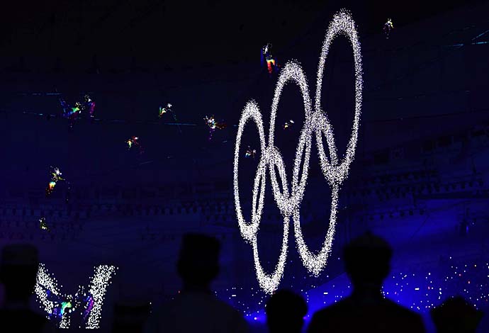 8月8日,第29屆夏季奧林匹克運動會在國家體育場——“鳥巢”隆重開幕。這是開幕式上閃閃發(fā)光的夢幻“五環(huán)”。