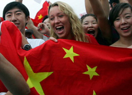 在北京,在上海,在青島、在沈陽……8月8日,這一刻充滿了奧運(yùn)氣氛,人們以各自不同的方式為北京喝彩,為奧運(yùn)狂歡。