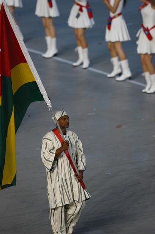>> 多哥代表團(tuán)在開(kāi)幕式上入場(chǎng)