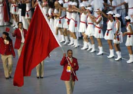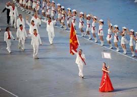 各國(guó)代表團(tuán)在開(kāi)幕式上入場(chǎng)
