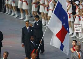 8月8日晚8時(shí),第29屆夏季奧林匹克運(yùn)動(dòng)會(huì)在國(guó)家體育場(chǎng)——“鳥(niǎo)巢”隆重開(kāi)幕。這是各國(guó)代表團(tuán)在開(kāi)幕式上入場(chǎng)。