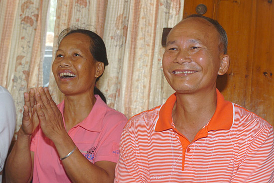 現(xiàn)在奧運(yùn)冠軍陳燮霞的最大心愿就是回家。“我都兩年沒有回家了!”她迫不及待地說。父母做的可口飯菜,屋外的香蕉林以及家鄉(xiāng)特有的溫馨氣息在這兩年里是陳燮霞一直縈繞在心頭的記憶。 下圖為8月9日,在陳燮霞的家里,那下金牌后母親(左)大聲叫好,而父親陳細(xì)泉(右)終于露出了笑容。 新華社記者