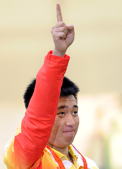 在北京奧運(yùn)會(huì)射擊男子10米氣手槍比賽中,中國(guó)選手龐偉以688.2環(huán)的總成績(jī)獲得金牌。