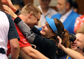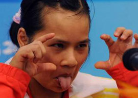 完美一舉 陳?ài)葡颊弥袊?guó)代表團(tuán)首金