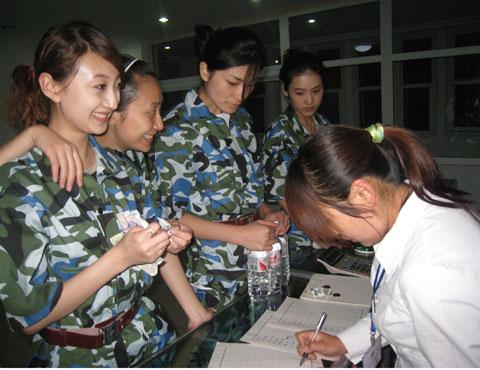 北京時間6月3日晚,來自全國各地的近200名奧運會開閉幕式禮儀引導(dǎo)員入住京郊的訓(xùn)練基地。奧運會到來之前,她們將在這里進行為期兩個月的集訓(xùn)。這些姑娘們將在奧運會開幕式上閃亮登場,向全球觀眾展現(xiàn)中國女性獨特的氣質(zhì)與魅力,因此這段時間里,她們的食宿和訓(xùn)練課程是人們關(guān)注的焦點:怎樣打造她們,怎樣呵護她們,想必沒有人不關(guān)心。