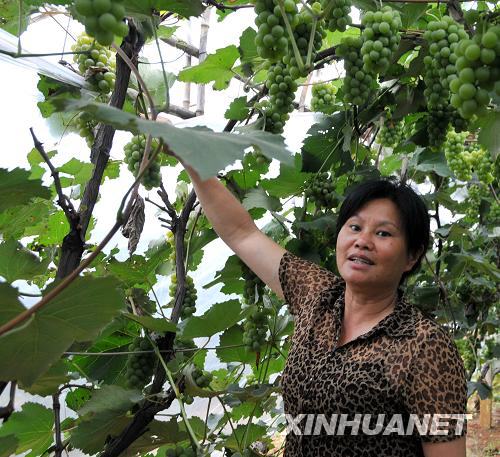 云南彌勒縣一個葡萄種植園園主魏萍在葡萄園里檢查避雨棚(8月7日攝)。云南農(nóng)業(yè)大學(xué)科研人員經(jīng)過試驗,明確了雨水是葡萄多數(shù)病害的“罪魁禍首”,探索出雨季來臨之前在葡萄架上采用塑料薄膜搭建避雨棚的方法,防治葡萄病害,效果明顯,解決了長期困擾云南葡萄種植業(yè)的關(guān)鍵性難題。