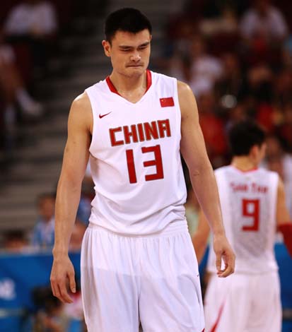 8月12日,中國隊13號姚明若有所思。
