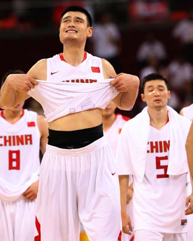 8月12日,中國(guó)隊(duì)姚明在比賽后。
