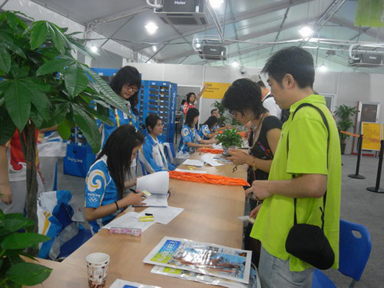 不僅在接待辦公室、大巴上志愿者熱情服務(wù),在奧運(yùn)村國際區(qū)的入口,負(fù)責(zé)安檢的、發(fā)證的志愿者們同樣熱情、友善,而且外語流利。