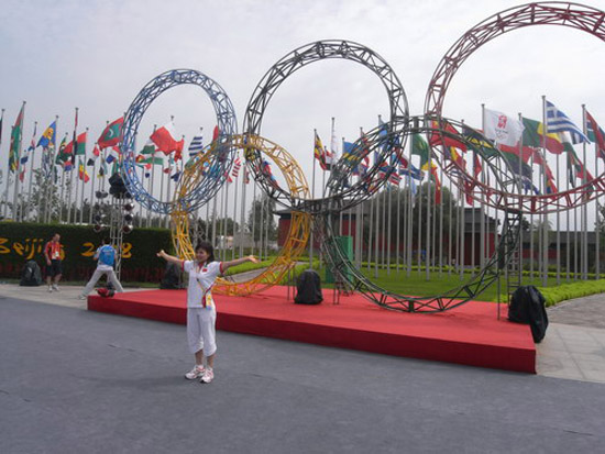 在升旗廣場,參加北京奧運(yùn)會(huì)的各個(gè)國家和地區(qū)的奧委會(huì)的旗幟都在這里迎風(fēng)飄揚(yáng)。記者在此停留的片刻,就有眾多中外人士來自留影。