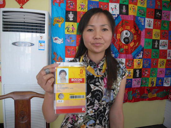 最具特色的當(dāng)然還是民族民間手工藝制作展示中心,這里有很多來自中國各地的民間手工藝人。來自陜西寶雞的布老虎手工藝人張海麗自7月27日奧運(yùn)村開村就來此工作了!拔覀兌际侵袊駞f(xié)組織來此展示的,不用任何費(fèi)用。來此銷售不是最重要的目的,更多的是展示工作,一種展示文化的工作,每天來自參觀的人還挺多!