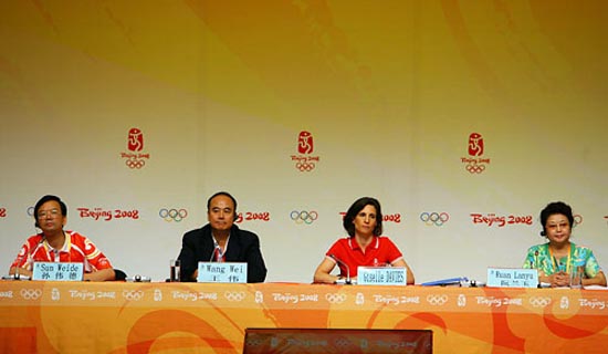 主持人孫偉德:大家早上好!歡迎大家參加北京奧組委、國際奧委會的聯(lián)合發(fā)布會。今天出席發(fā)布會的有北京奧組委執(zhí)行副主席兼新聞發(fā)言人王偉先生、國際奧委會的吉塞爾女士、北京市文化局副總巡視員阮蘭玉女士,下面請王偉先生講話。