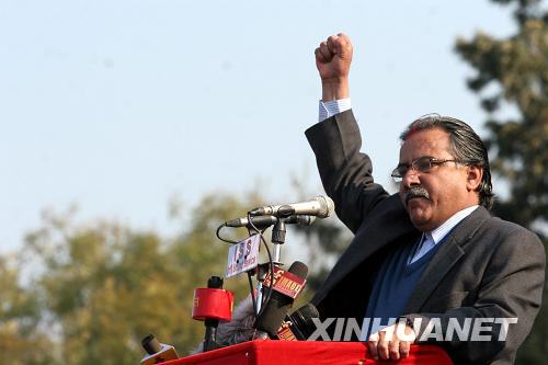 8月13日,尼泊爾共產(chǎn)黨(毛主義)主席普拉昌達(dá)在首都加德滿都舉行的集會上向群眾致意。尼泊爾共和國將于15日進(jìn)行首任總理選舉,普拉昌達(dá)和來自尼泊爾制憲會議第二大黨的尼泊爾前首相德烏帕于14日獲各自政黨提名,進(jìn)行參選。 |