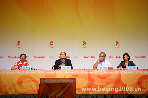 日期:8月15日 時間:11:45 地點:北京奧運(yùn)會主新聞中心 主持人孫偉德:早上好!歡迎大家出席奧組委和IOC聯(lián)合例行發(fā)布會,今天很高興請到北京奧組委執(zhí)行副主席兼秘書長王偉先生、國際奧委會新聞宣傳部部長Giselle
