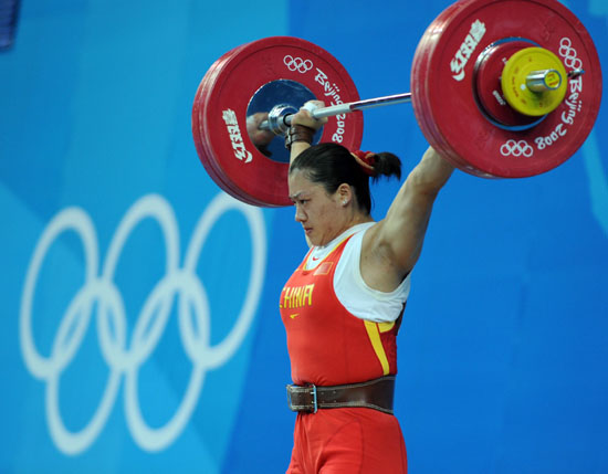 中國女將本屆奧運(yùn)會第四次站在舉重賽場的最高領(lǐng)獎臺上。曹磊在女子舉重75公斤級比賽中摘得的這枚金牌,是中國女舉第一次在這個級別摘得奧運(yùn)會金牌,同時也實(shí)現(xiàn)了中國女舉在奧運(yùn)會上奪金的“滿貫”——至此中國女舉已經(jīng)獲得過奧運(yùn)會所有級別的冠軍。 15日的比賽再次毫無懸念。和自己的三名隊(duì)友一樣,曹磊在抓舉比賽結(jié)束后已經(jīng)基本鎖定勝局。最終她282公斤的總成績高出第二名16公斤之多,同時,她還將該級別奧運(yùn)會三項(xiàng)紀(jì)錄都寫上了自己的名字,其中兩次刷新總成績紀(jì)錄。不過,她最終沒能刷新世界紀(jì)錄。 “最后一把我不太專注,因?yàn)槲液鋈幌氲饺ナ啦痪玫膵寢。”賽后在混合區(qū)面對記者采訪時,胸前掛著“金鑲玉”金牌的曹磊泣不成聲,“這塊金牌,我要獻(xiàn)給我的祖國人民和我的母親! 中國女隊(duì)總教練馬文輝告訴記者,在名單公布后,他想了又想,還是決定告訴曹磊她母親去世的消息,“我想她有這個承受能力,我們不能瞞她。” 俄羅斯選手娜·葉夫斯秋欣娜15日的表現(xiàn)一般,這位2007年世錦賽銅牌得主抓舉成績僅為117公斤,不到一年前,她曾舉起128公斤的重量。曹磊出場時,所有對手都已經(jīng)結(jié)束了比賽,曹磊三次試舉全部成功,最終成績?yōu)?28公斤,這比第二位的哈薩克斯坦選手阿·瓦熱寧娜多了9公斤,也創(chuàng)造了新的抓舉奧運(yùn)會紀(jì)錄。 瓦熱寧娜和葉夫斯秋欣娜選擇了為銀牌而戰(zhàn),這讓曹磊的奪冠沒有了意外的可能。將開把重量從155公斤降到147公斤并成功舉起后,曹磊實(shí)際上已經(jīng)穩(wěn)獲金牌,同時,她還打破了總成績的奧運(yùn)會紀(jì)錄。瓦熱寧娜和葉夫斯秋欣娜最后一把都舉起147公斤,最終以266公斤和264公斤分列二三位。 挺舉第二把154公斤,曹磊再次刷新了挺舉和總成績奧運(yùn)會紀(jì)錄。 最后一把曹磊要了159公斤,這個重量和挺舉世界紀(jì)錄持平,但如果舉起,曹磊將刷新總成績世界紀(jì)錄。不過,曹磊最終沒能舉起這一重量,最終以282公斤的總成績奪冠。 這是中國舉重隊(duì)本屆奧運(yùn)會獲得的第七枚金牌,這個數(shù)字再次刷新了舉重隊(duì)奧運(yùn)會最好戰(zhàn)績。同時,這也是中國女隊(duì)繼2000年悉尼奧運(yùn)會后再次“包攬”所參加級別的四枚金牌!拔覀冏鲞^最壞的準(zhǔn)備,這四場比賽我們每場都已盡心盡力!瘪R文輝總結(jié)說。 而本屆奧運(yùn)會上獲得48公斤級和75公斤級金牌,也讓中國女隊(duì)享有了另一項(xiàng)榮譽(yù)——三屆奧運(yùn)會,十一枚金牌,女子所有級別的金牌拿了個遍。