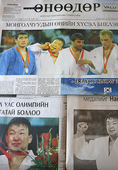蒙古國選手奈丹·圖布辛巴亞爾14日在柔道100公斤級比賽中奪得金牌。這是蒙古國自1964年參加奧運會以來獲得的首枚金牌。14日夜至15日晨,蒙古國近萬名群眾在烏蘭巴托市中心廣場歡慶勝利,度過了不眠之夜。 “我們贏了!”“我們拿到金牌了!”這是市中心廣場上聽到最多的一句話。人們載歌載舞,歡呼聲不斷,更有市民流下激動的淚水。 一位名為額爾登的市民表示,這是蒙古國的大喜事,我們幾個朋友要備酒慶祝,我們太高興了。 晚9時左右,蒙古國總統(tǒng)、總理、議長一起來到市中心廣場!敖裉焱砩鲜遣幻呖駳g夜,”總統(tǒng)那木巴爾·恩赫巴亞爾在講話一開始就說,“蒙古國出了金牌運動員,這是我的榮幸,也是人民的榮幸,我們等待這一刻很久了!” 總理桑吉·巴亞爾搶過麥克風,高呼“蒙古國萬歲”,聲音因激動有些沙啞。廣場上響起震耳的歡呼聲。 蒙古國的這“三巨頭”領(lǐng)唱國歌,廣場上的氣氛接近沸騰。 當天,蒙古國總統(tǒng)下令授予圖布辛巴亞爾“功勛運動員”和“勞動英雄”稱號以及象征最高榮譽的“蘇赫巴托”勛章?偨y(tǒng)、總理和議長還分別發(fā)出賀電,代表全體人民向圖布辛巴亞爾表示感謝,并希望這枚金牌能帶動蒙體育事業(yè)發(fā)展至新的高峰。 據(jù)悉,圖布辛巴亞爾將獲得蒙政府的1.2億圖格里克(約合1萬美元)的獎金。蒙電信公司14日也決定免費向圖布辛巴亞爾提供“9999-9999”的電話號碼!9”對蒙古國人來說是一個吉祥的數(shù)字。 圖布辛巴亞爾是第一次參加奧運會,他2002年開始學習柔道,曾獲得亞錦賽亞軍和世界杯季軍。 蒙古國共獲得了29個北京奧運會參賽資格。13日,蒙射擊選手貢德格瑪獲得本次奧運會的首枚銀牌。在北京奧運會之前,蒙古國共獲得了15枚奧運獎牌,但沒有1枚金牌。