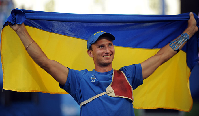 8月15日,烏克蘭選手維克托·魯班在北京奧運(yùn)會(huì)射箭男子個(gè)人決賽中,以113環(huán)比112環(huán)戰(zhàn)勝韓國(guó)選手樸敬模,獲得金牌。