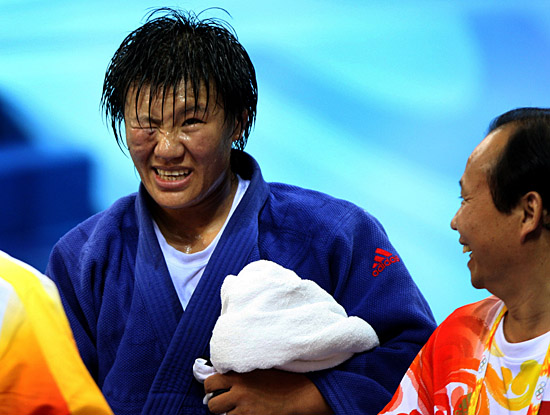 在山呼海嘯般的吶喊聲中,兩個強(qiáng)壯的女人頭部相牴,僵持不下。汗,一滴一滴掉在柔道墊上。 這是北京奧運會女子柔道78公斤級的決賽,25歲的楊秀麗與古巴選手亞倫妮斯·卡斯蒂略進(jìn)行了本屆奧運會歷時最長的一次柔道比賽。楊秀麗右眼下部受傷,她有點睜不開這只眼睛,但她堅信:她將贏得這枚金牌。 她贏了。她滿臉汗水,眼睛腫著,走下臺來,朝教練劉永福喊了聲“師父!” 就為了叫了這一聲,她整整努力了10年! 楊秀麗是在1998年碰到劉永福的。 在此之前,這位農(nóng)家姑娘練過鉛球,她從小力氣頗大,在她的老家遼寧省阜新市阜新蒙古族自治縣八家子鄉(xiāng)水泉村,家里院里現(xiàn)在還放著一個用來飲馬的大石槽子。這個大石槽子特別重,一般的成人想要搬動它都很困難,但楊秀麗12歲時就能把它搬起來。 1997年,楊秀麗進(jìn)入阜新市體校練柔道,1998年,她進(jìn)入遼寧省隊,在那里,她碰到了劉永福,中國柔道的傳奇教練。 楊秀麗很內(nèi)向,訓(xùn)練放不開,拿不出狠勁來。劉永福很急,怎么激她,都不管用。最后劉永福發(fā)了狠話:“就你這點膽量怎么沖奧運會?要不趕緊回家得了!你前面就兩條路,一是把我摔倒,咱們一起拿奧運冠軍,二就是回宿舍收拾東西滾蛋!” 楊秀麗被逼無奈,終于咬著牙沖向劉永福,一上手就把劉永福給撂翻了! 小姑娘嚇壞了,劉永福卻躺在地上樂,老胳膊老腿沒事。這以后,楊秀麗訓(xùn)練就放開了,敢喊敢沖。 但是,她一直不敢喊劉永!皫煾浮,對這位帶出過莊曉巖、孫福明、袁華三位奧運冠軍的傳奇人物,她畏若天神。 如今,10年努力的艱辛長路,終于在北京科技大學(xué)體育館畫上了一個圓滿句號。在賽后的新聞發(fā)布會上,楊秀麗終于解釋了原因:“10年了,我感覺自己水平?jīng)]到那個位置,感覺沒有資格叫他師父,今天,自己終于站在最高領(lǐng)獎臺上,發(fā)自內(nèi)心叫他一聲‘師父’……” 冠軍頒獎前,楊秀麗沒有直接登臺,她先繞行一圈,輪流與三名獎牌獲得者握手,此后才登臺接受頒獎。全場中國觀眾與她一起大聲唱國歌。 這是中國選手時隔8年之后,重新登上女子柔道78公斤級的巔峰。在響成一片的閃光燈前,楊秀麗把金牌舉在胸前,她的手,不像一個25歲姑娘的手,骨節(jié)粗大,傷痕累累。 “她身體條件并不是太好,但特別能吃苦,”劉永福如是評價。 楊秀麗內(nèi)向,靦腆,但是獲得奧運冠軍后,她的話多起來了,她說自己的愛好是練書法,每天晚上都要堅持寫一寫,“我覺得寫得還可以,當(dāng)然,跟師父比就差得遠(yuǎn)了”。 劉永福一向讓自己的女弟子練習(xí)書法,在他看來,練書法能調(diào)解心氣,對一個高水平柔道選手而言,“靜氣”二字是大境界。 記者問她:“受傷了,有沒有影響比賽?” 她說:“視線是有些模糊,但這點傷算什么?抗震救災(zāi)精神一直鼓勵著我,說句土話,上戰(zhàn)場死都不怕,這個算什么?只有拼,才有活路!” 楊秀麗是一名軍人運動員,她為此自豪。