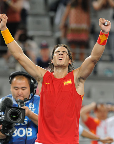 當日,在北京奧運會網球男單半決賽中,西班牙選手納達爾以2比1戰(zhàn)勝塞爾維亞選手德約科維奇。