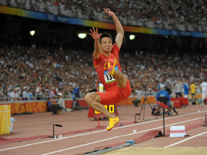 8月16日,中國選手李潤潤在男子跳遠(yuǎn)及格賽中。當(dāng)日,北京奧運會田徑比賽在國家體育場“鳥巢”繼續(xù)進(jìn)行。