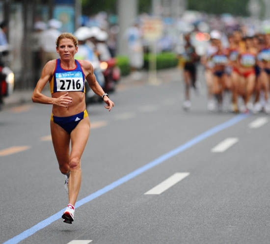馬尼亞的38歲老將托梅斯庫·迪塔今天在北京奧運(yùn)會女子馬拉松比賽中一路領(lǐng)先,以2小時26分44秒的成績獲得冠軍,我國選手周春秀以2小時27分07秒獲得銅牌,成績僅比肯尼亞的卡·恩德雷巴慢了1秒。 我國選手朱曉琳獲得了第四名,成績是2小時27分16秒。世界紀(jì)錄保持者、英國35歲的老將拉德克里夫在比賽中一度停下退出,但隨之又鼓足氣力堅(jiān)持了下來,她最終雖然僅獲得第23名,但頑強(qiáng)的精神贏得了觀眾的喝彩。 在今天的比賽中,托梅斯庫·迪塔在跑過20公里后,突然變速,甩開眾人形成單一箭頭,到了25公里時已經(jīng)把第一集團(tuán)拉下了30秒。周春秀和朱曉琳一直埋伏在第一集團(tuán)里面,英國老將拉德克里夫在跑過25公里后就掉了下來。 托梅斯庫·迪塔的個人最好成績?yōu)?小時21分30秒,本賽季最好成績是2小時27分45秒。上屆奧運(yùn)會上,她排名20位。賽前,她并不是奪標(biāo)的熱門人物,比她成績好的選手超過10位,但是,今天在綿綿小雨中,這位羅馬尼亞老將狀態(tài)甚佳,她通過35公里處的成績是2小時02分整,將她身后跟著的第一集團(tuán)的8名選手甩下100多米。隨后,她將優(yōu)勢一直保持到終點(diǎn),比較輕松地贏得了金牌。 銀牌的較量非常激烈,還剩最后三公里時,周春秀和朱曉琳頑強(qiáng)地和肯尼亞的瑪·科穆和恩德雷巴較量,四人緊緊咬住,誰也甩不開誰。進(jìn)入鳥巢后,周春秀在最后250米處沖刺超越恩德雷巴,但肯尼亞人在最后一個彎道上實(shí)行了反超。兩人一直較量得難解難分,最終,周春秀以1秒之差失去銀牌。