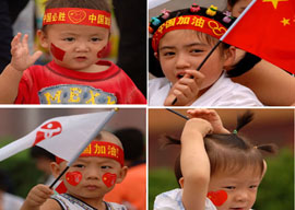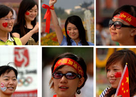 漫步北京街頭,不時可見北京市民、游客手中的國旗、臉上的貼紙,他們用這種時尚的方式為中國運動員加油、為奧運喝彩。