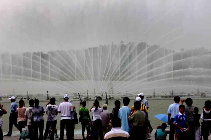 8月17日,人們?cè)趭W林匹克森林公園欣賞音樂噴泉表演。當(dāng)日,4萬觀眾來到北京奧林匹克公園游覽。占地1000多公頃的北京奧林匹克公園包括奧林匹克森林公園、景觀大道、國家體育館、國家體育場(chǎng)、國家游泳中心和運(yùn)動(dòng)員村等設(shè)施。