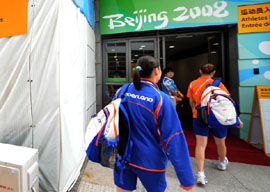 乒乓球比賽中有一個重要環(huán)節(jié),即每次正式比賽前,運動員都會在大賽專設(shè)的“球拍粘貼處”用有機快速膠水把底板與套膠粘貼起來。北京大學(xué)體育館也在運動員入口處設(shè)立“球拍粘貼處”,為參賽選手提供便利。
