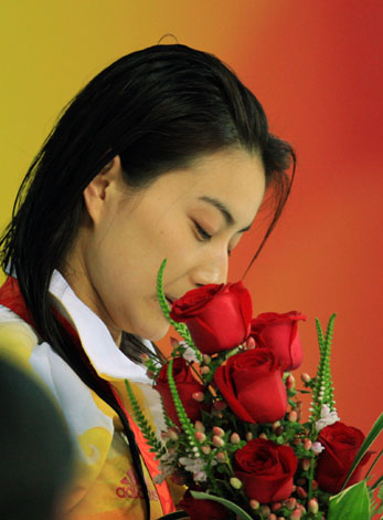 8月17日,中國(guó)選手郭晶晶在領(lǐng)獎(jiǎng)臺(tái)上。